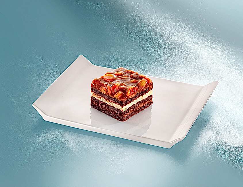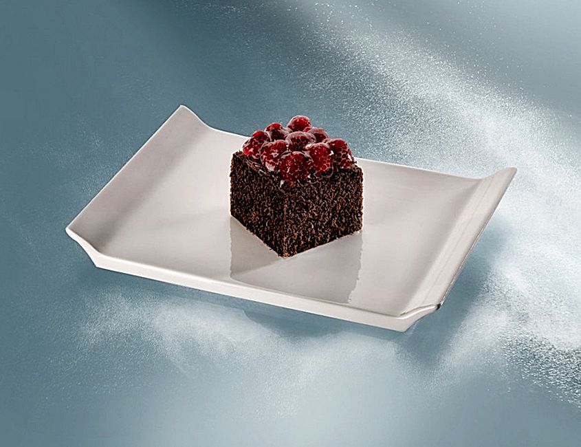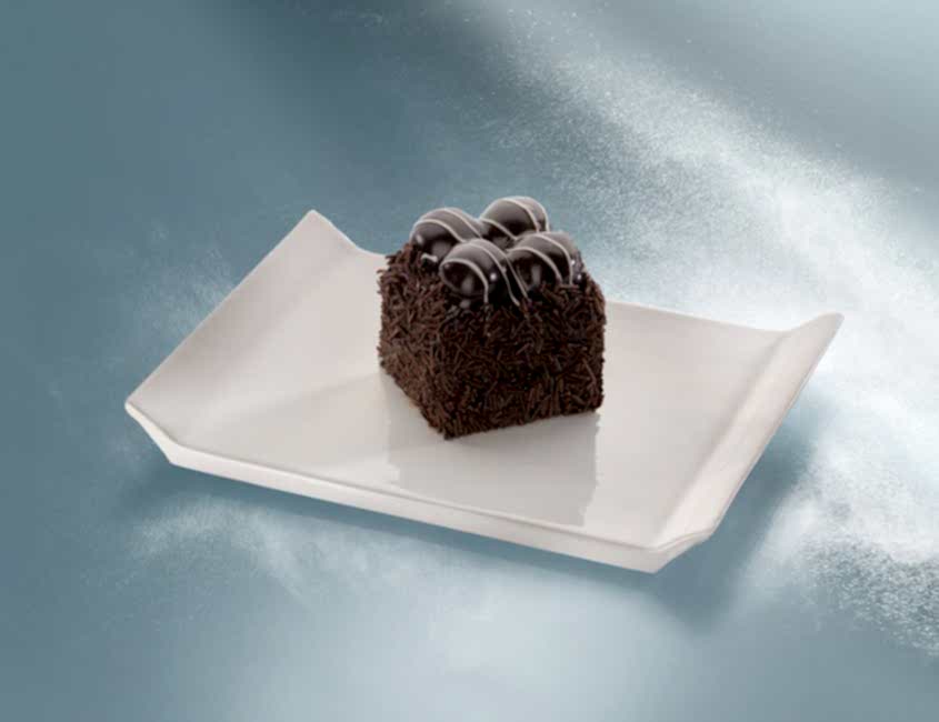 Siyah çikolata ve kenarları çikolata kaplıdır.