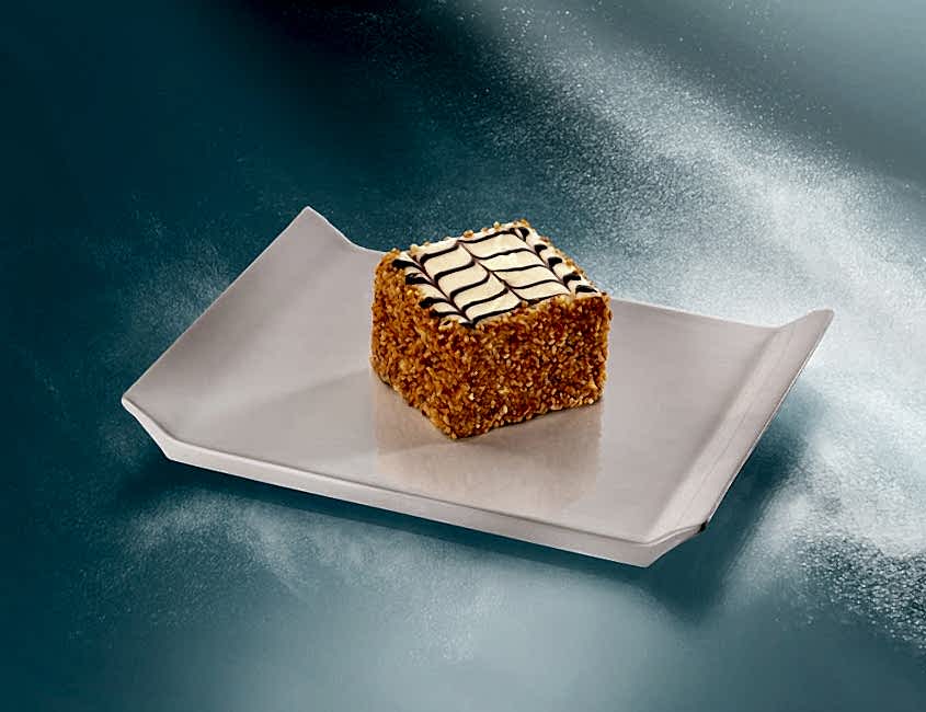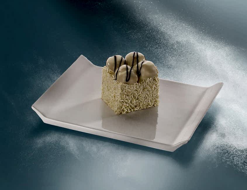 Beyaz çikolata ve kenarları çikolata kaplıdır.