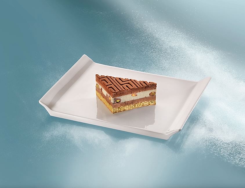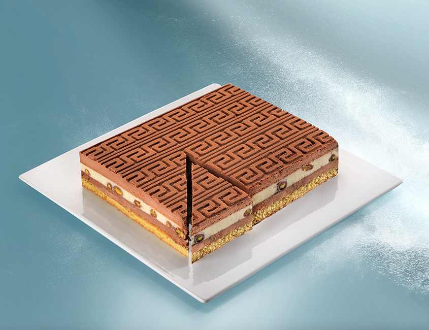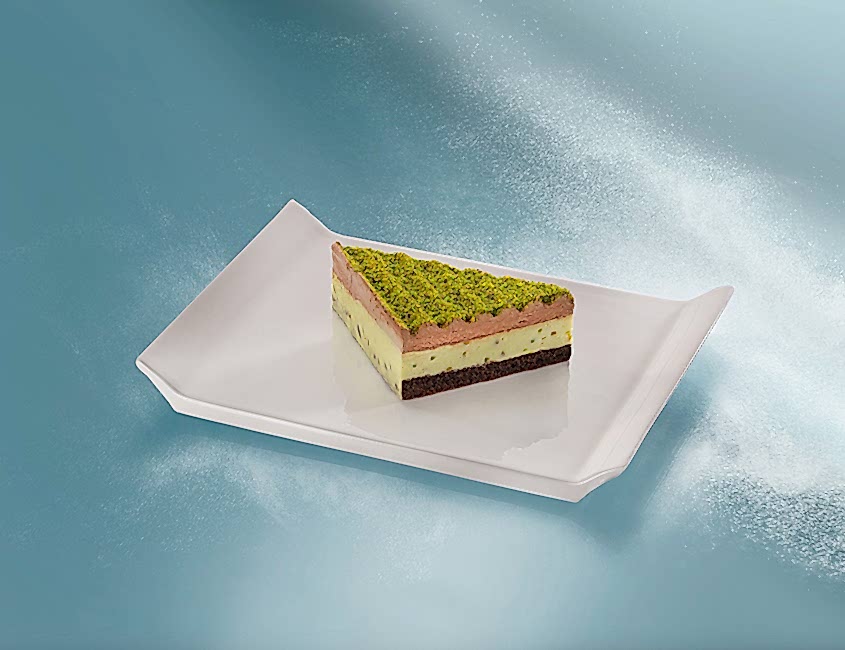 Siyah çikolata,beyaz çikolota,özel karışımlı mus (mus’un içeriği kakao,süt ve krema) ve tabanı fındık tozundan oluşmkata.Ayrıca içeriğinde bütün fıstık bulunmakta.